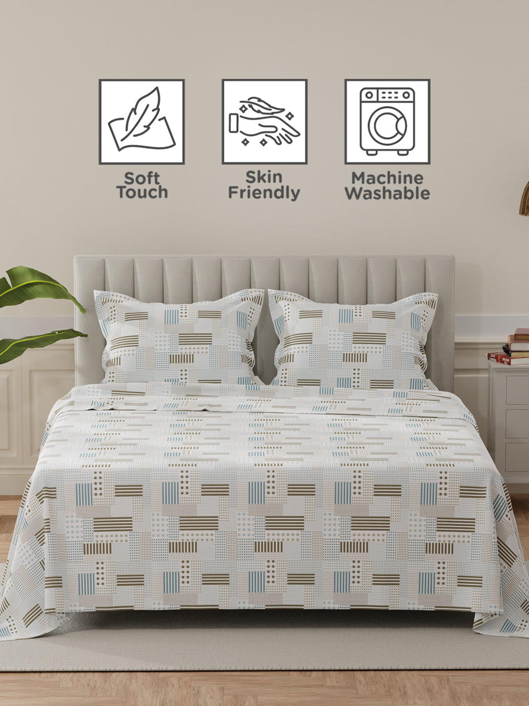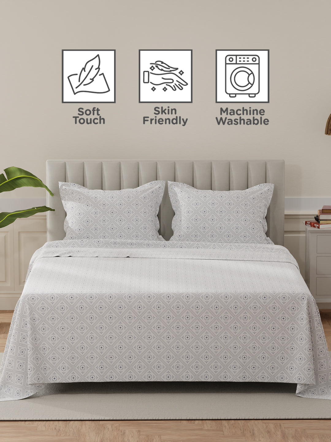 The 100% cotton fabric ensures durability and a luxurious feel, while the breathable weave keeps you cool all night. Perfect for those who appreciate elegance and comfort, this set combines aesthetic appeal with practicality.