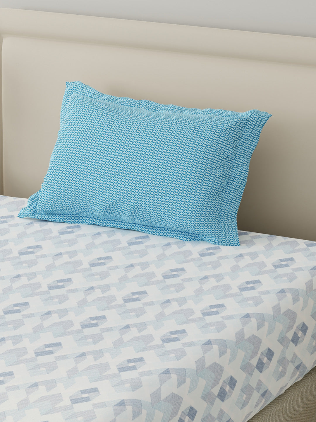 BasicX 100% Cotton 120 TC Blue Geometric Single Bedsheet with 1 Pillow Cover
