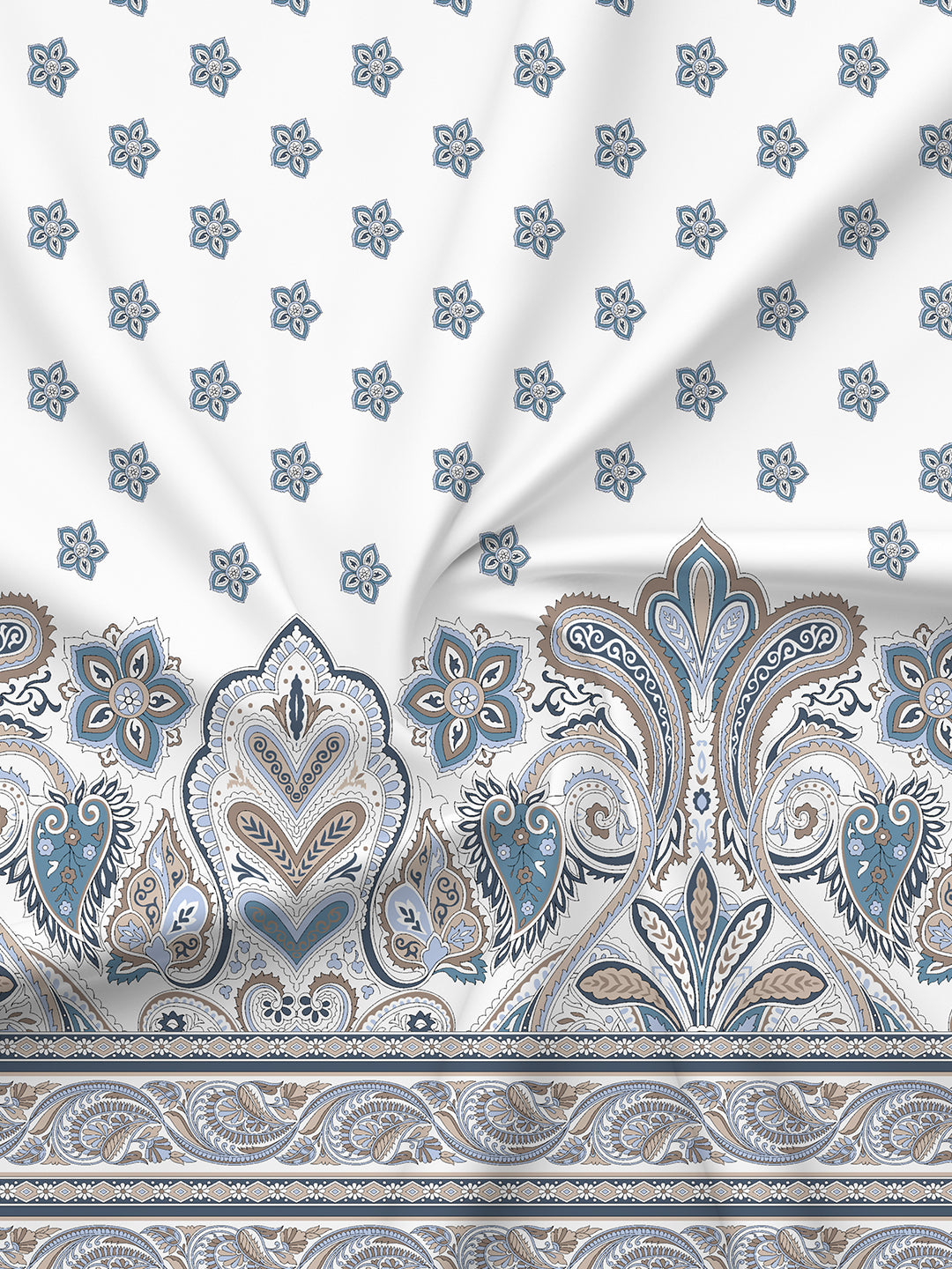 BasicX 100% Cotton 120 TC Blue & White Floral King Bedsheet with 2 Pillow Covers