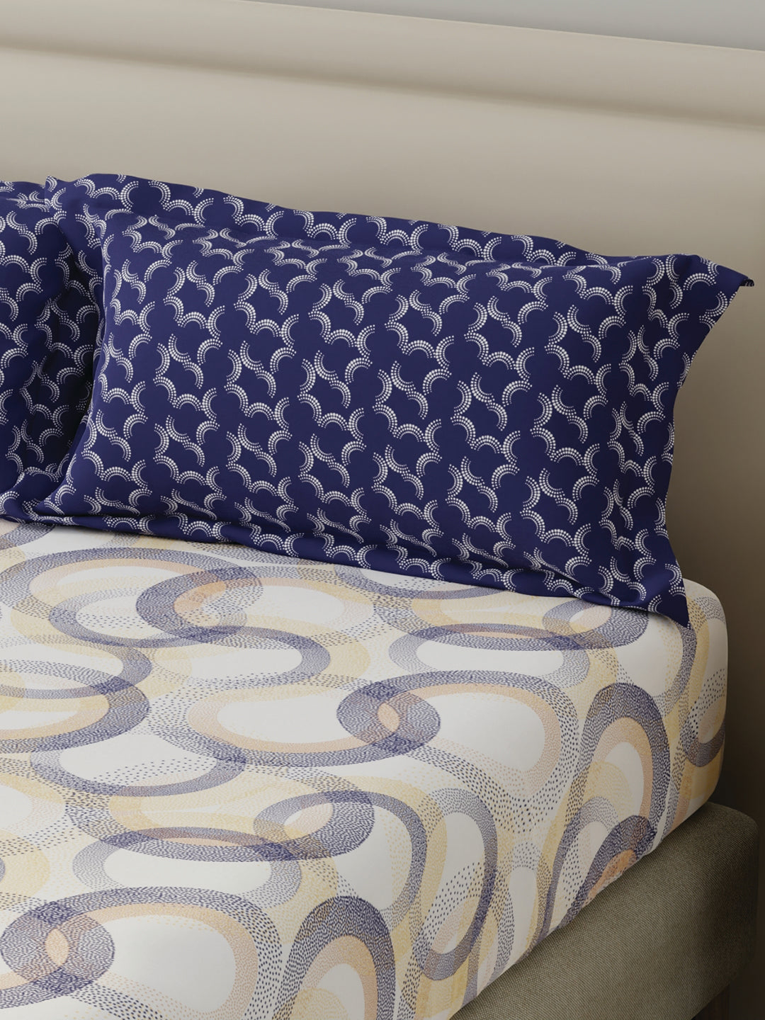 Experience the ultimate in comfort and style with Layers BasicX 100% Cotton Bedsheet set. Made from premium 120 TC cotton, this bedsheet offers a soft, breathable feel and lasting durability. Each set includes a bedsheet and 2 pillow covers, featuring prints inspired by nature and contemporary design.