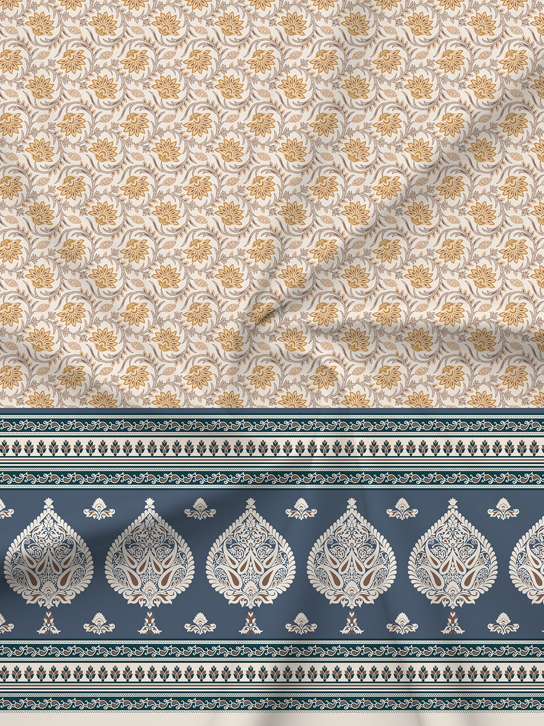 BasicX 100% Cotton 120 TC Blue & Yellow Floral King Bedsheet with 2 Pillow Covers