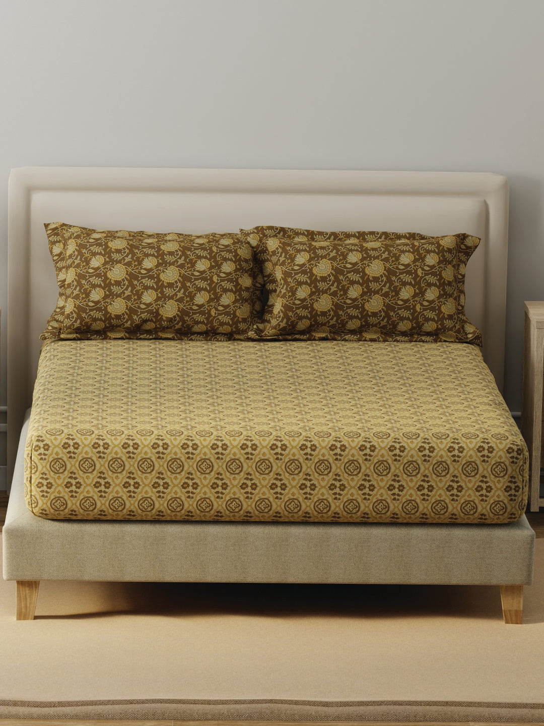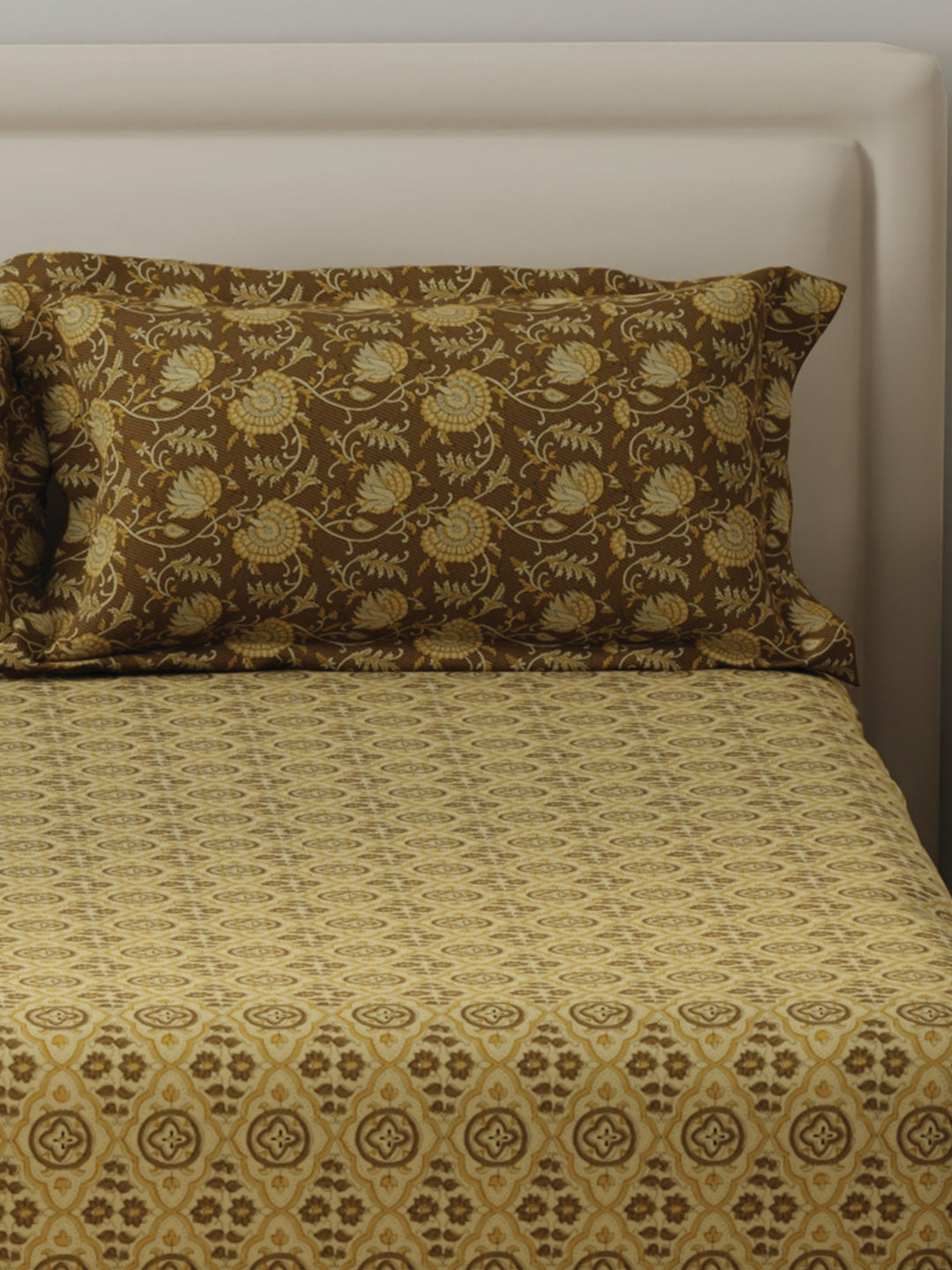 BasicX 100% Cotton 120 TC Brown Printed Double Bedsheet with 2 Pillow Covers