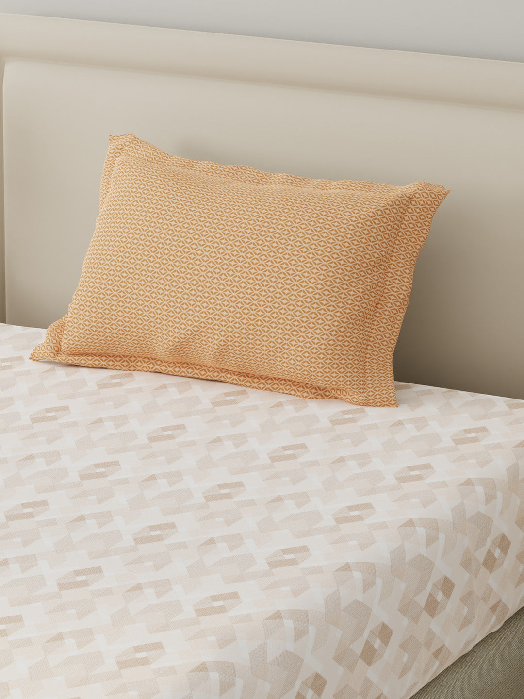BasicX 100% Cotton 120 TC Cream Geometric Single Bedsheet with 1 Pillow Cover