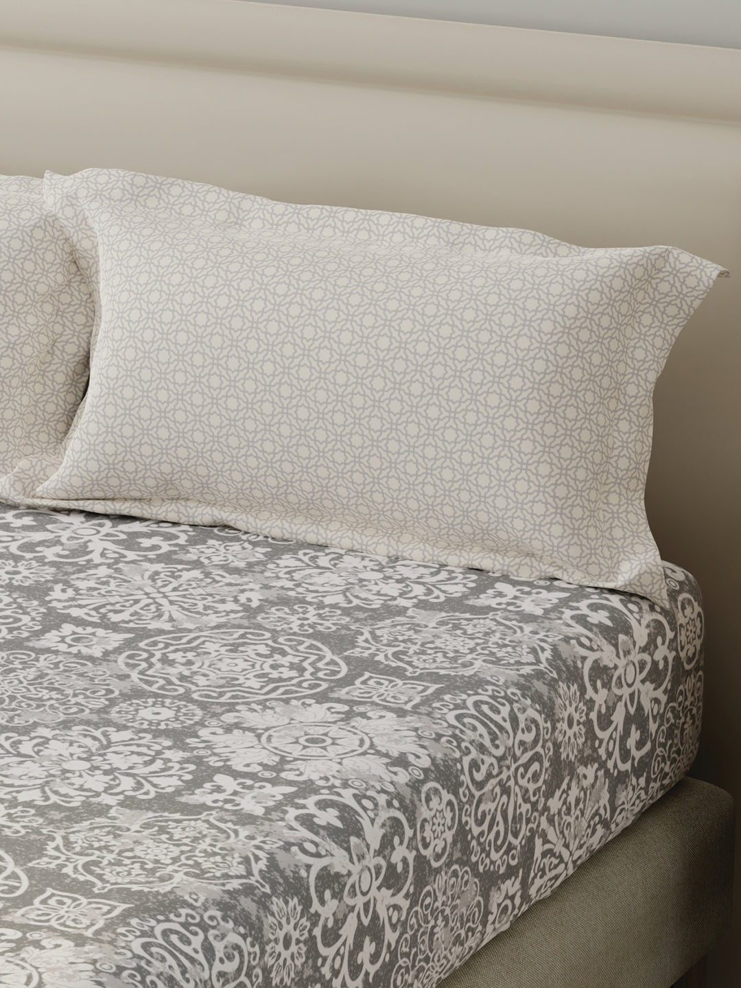 BasicX 100% Cotton 120 TC Grey Printed Double Bedsheet with 2 Pillow Covers
