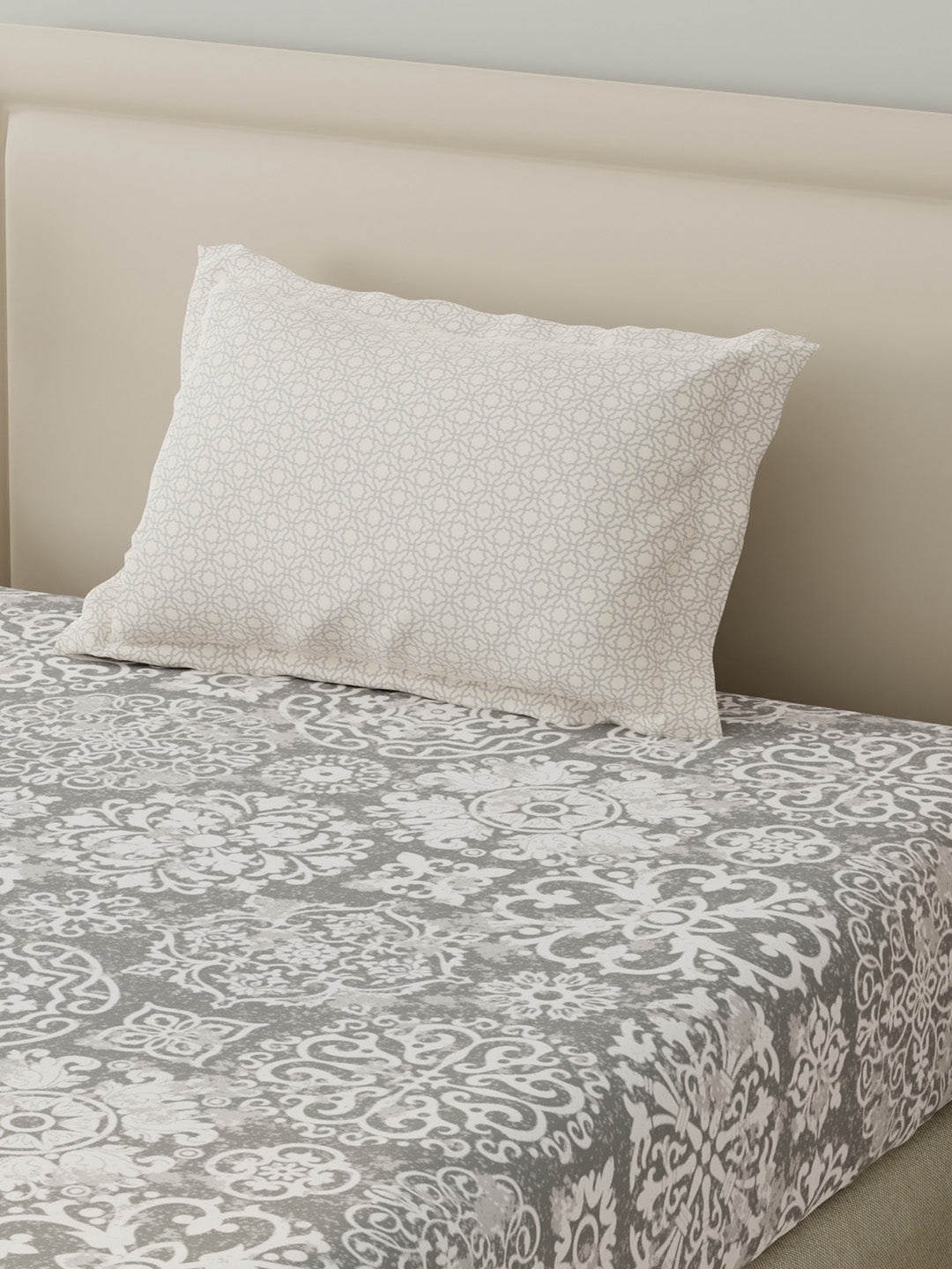 BasicX 100% Cotton 120 TC Grey Printed Single Bedsheet with 1 Pillow Cover