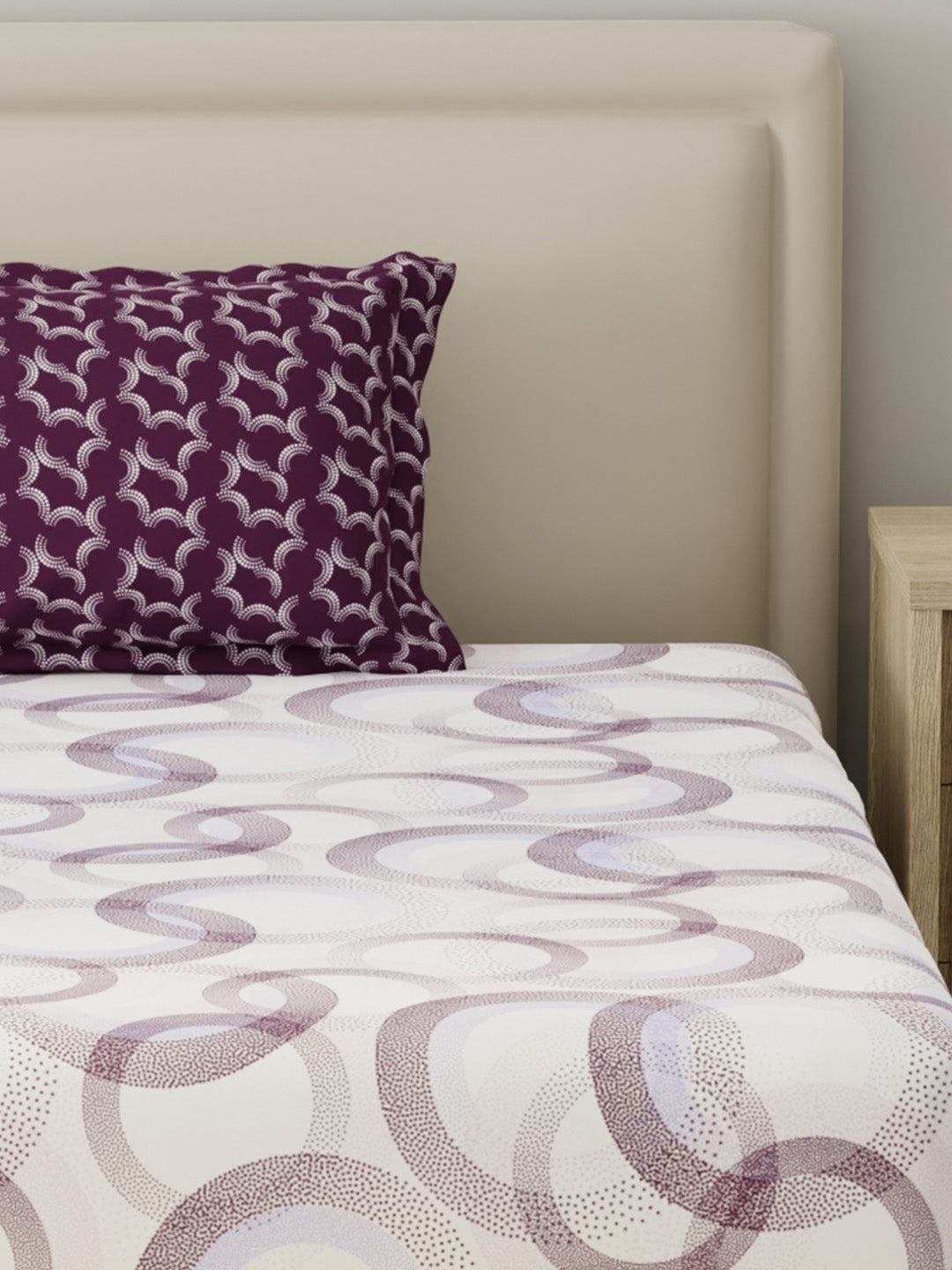 BasicX 100% Cotton 120 TC Purple & White Geometric Single Bedsheet with 1 Pillow Cover
