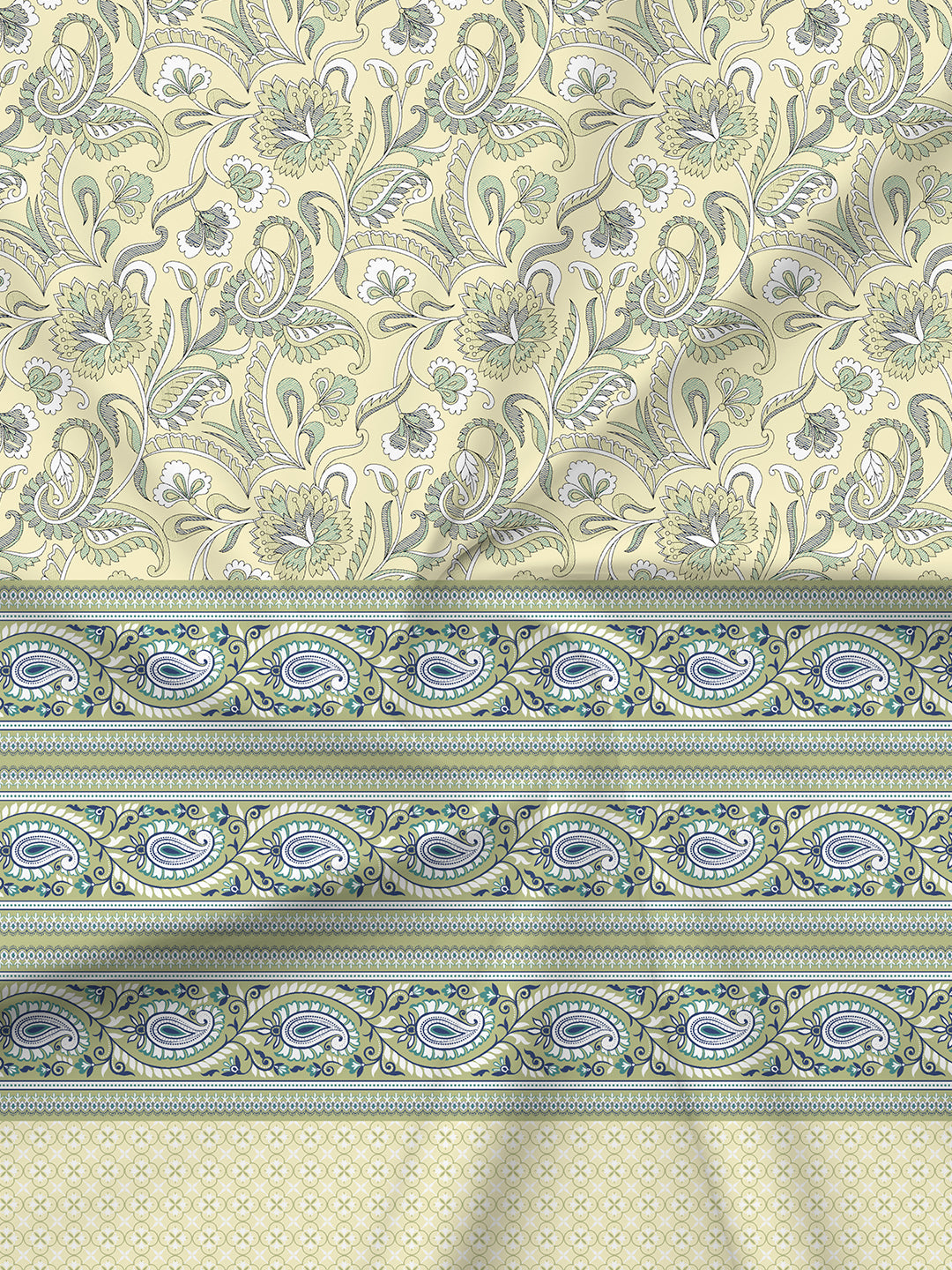 BasicX 100% Cotton 120 TC Yellow Paisley Printed King Bedsheet with 2 Pillow Covers