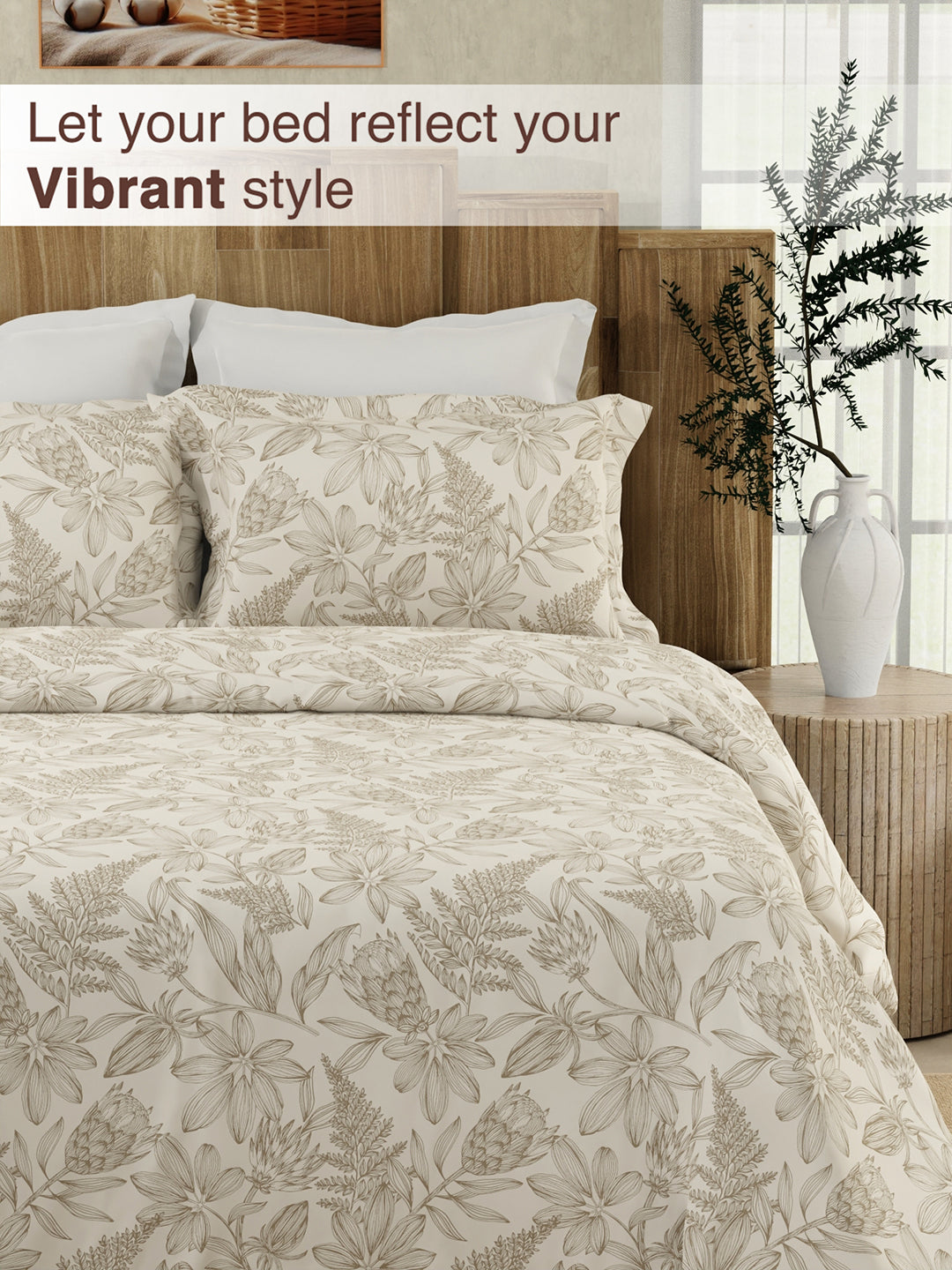 Double Size Bedsheet Set, 100% Cotton 200 TC Beige Linear Floral Printed