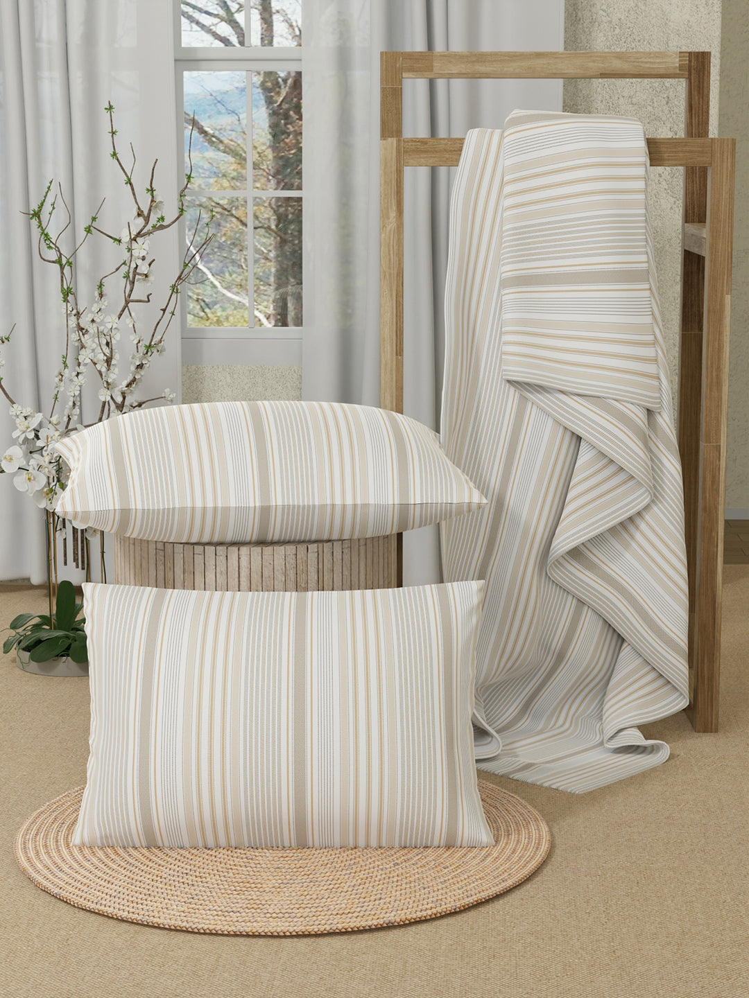 Double Size Bedsheet Set, 100% Cotton 200 TC Beige Textured Stripe Natural Printed