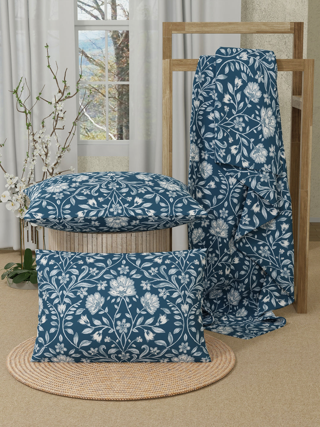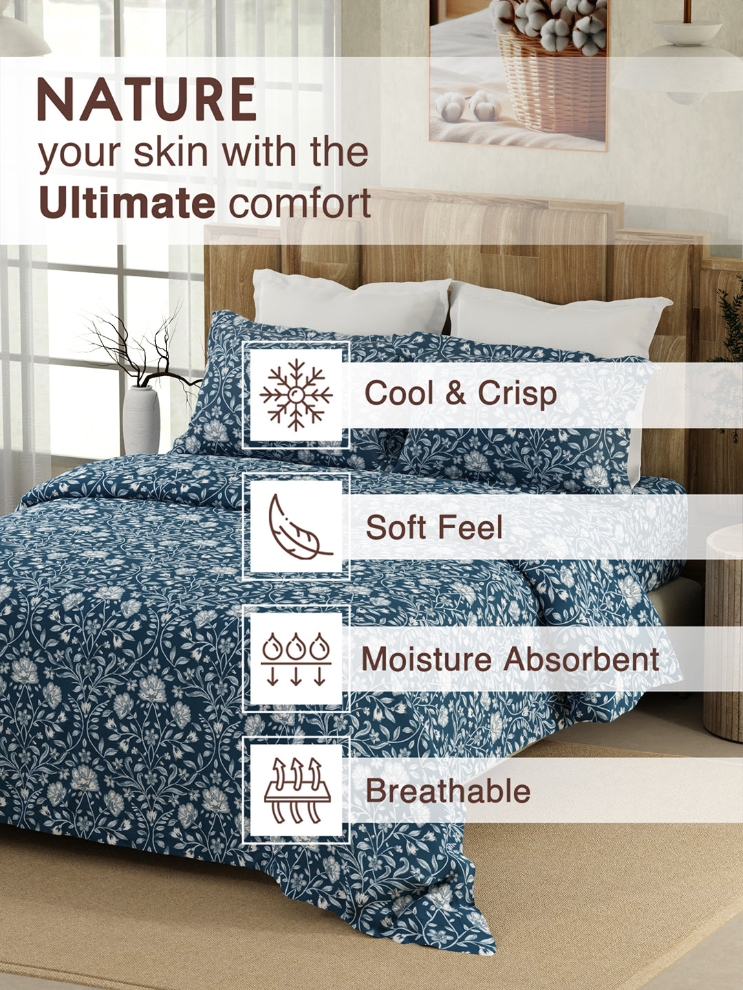 Double Size Bedsheet Set, 100% Cotton 200 TC Navy Adorn Floral Printed