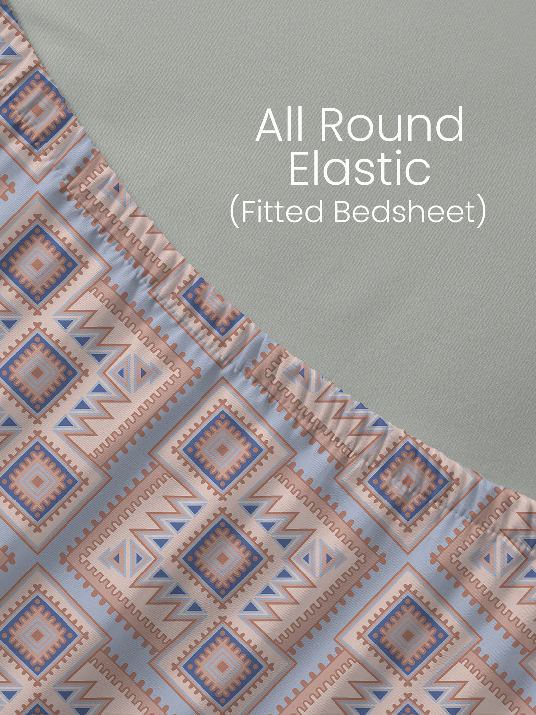 King Fitted Sheet Set, 100% Cotton 140 TC, Brown & Blue Geometrical, Home Easy