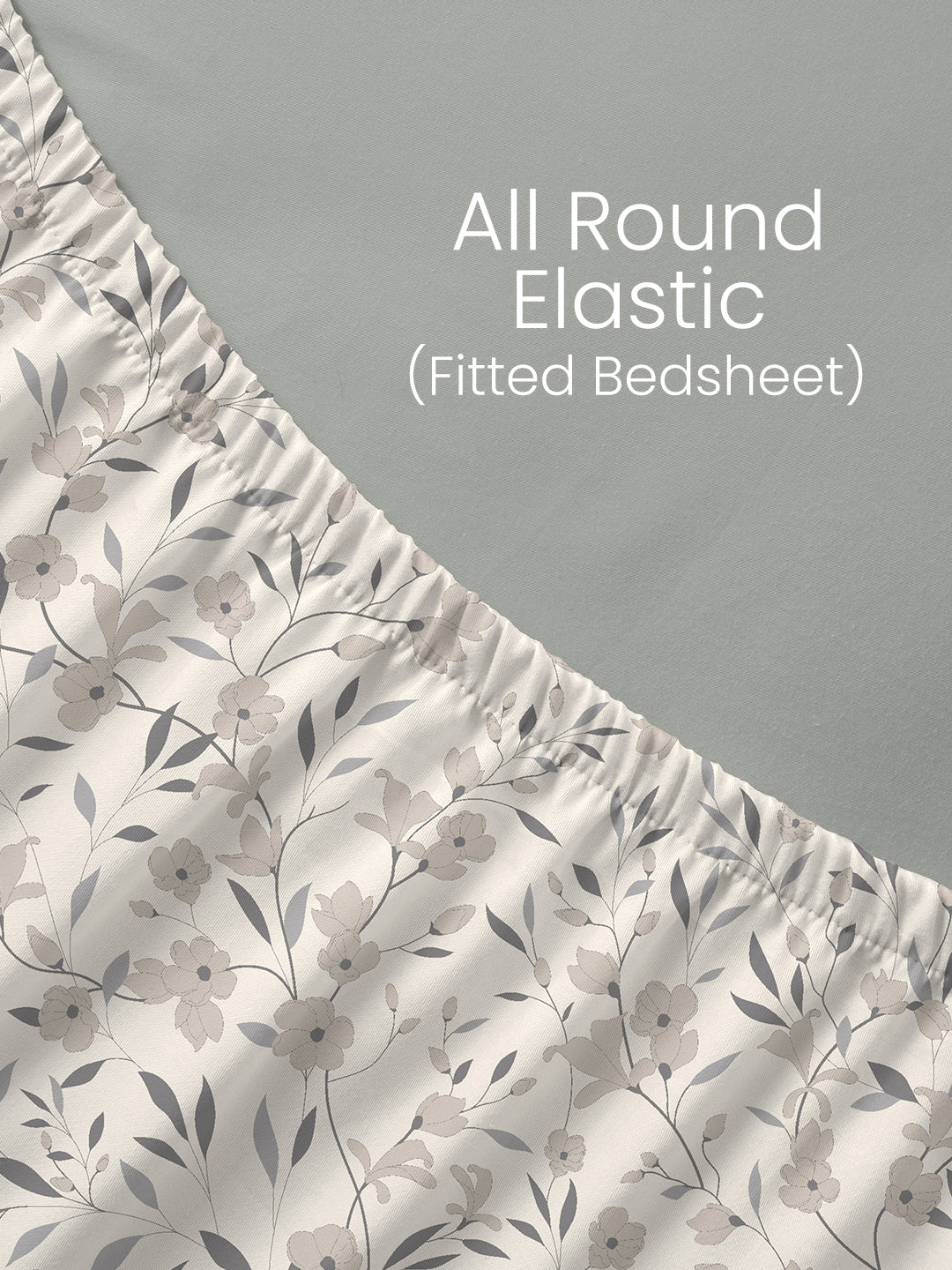 King Fitted Sheet Set, 100% Cotton 140 TC, Grey Floral, Home Easy