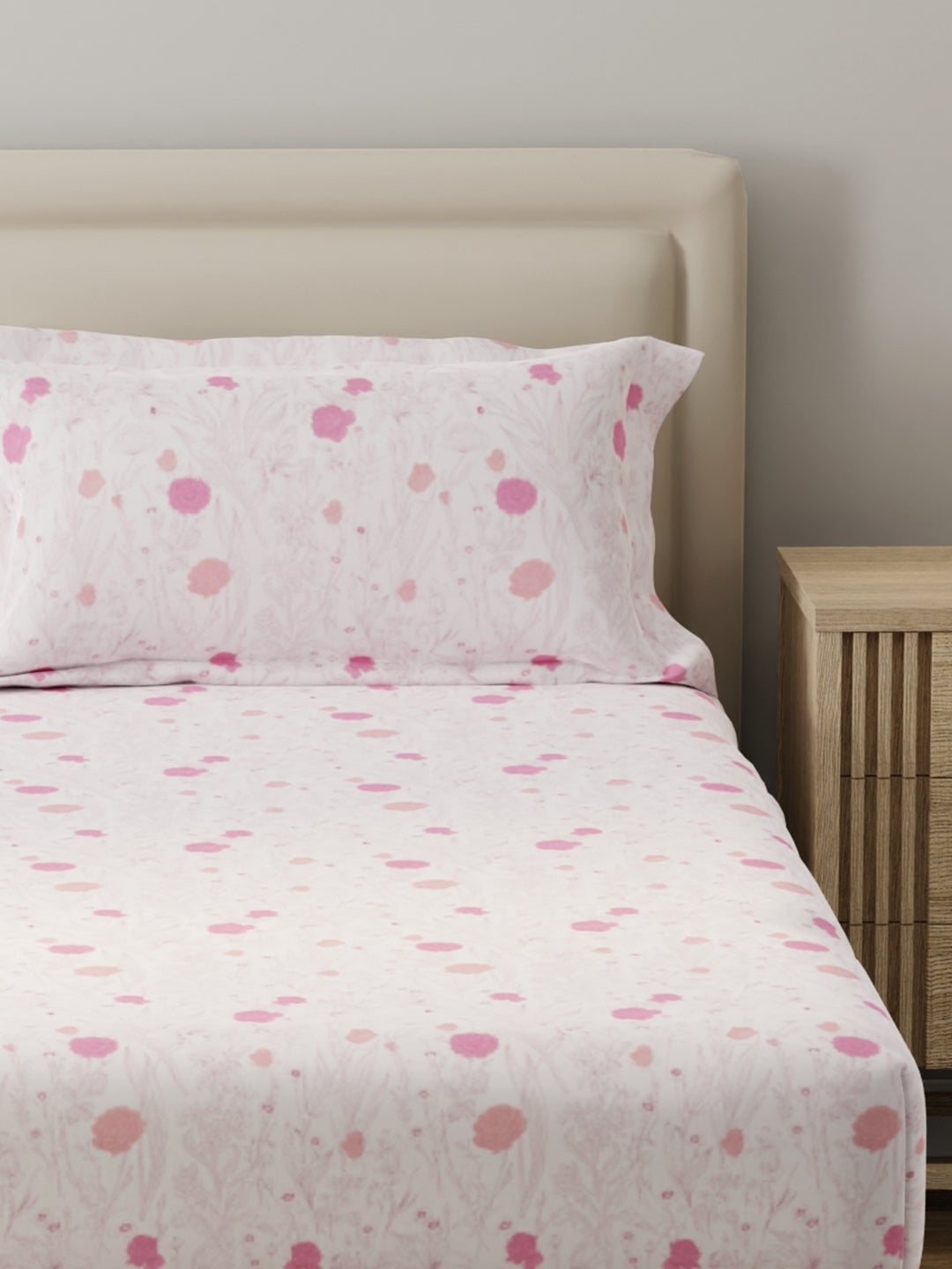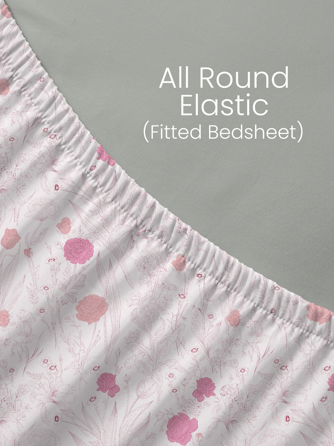 King Fitted Sheet Set, 100% Cotton 140 TC, Pink Floral, Home Easy