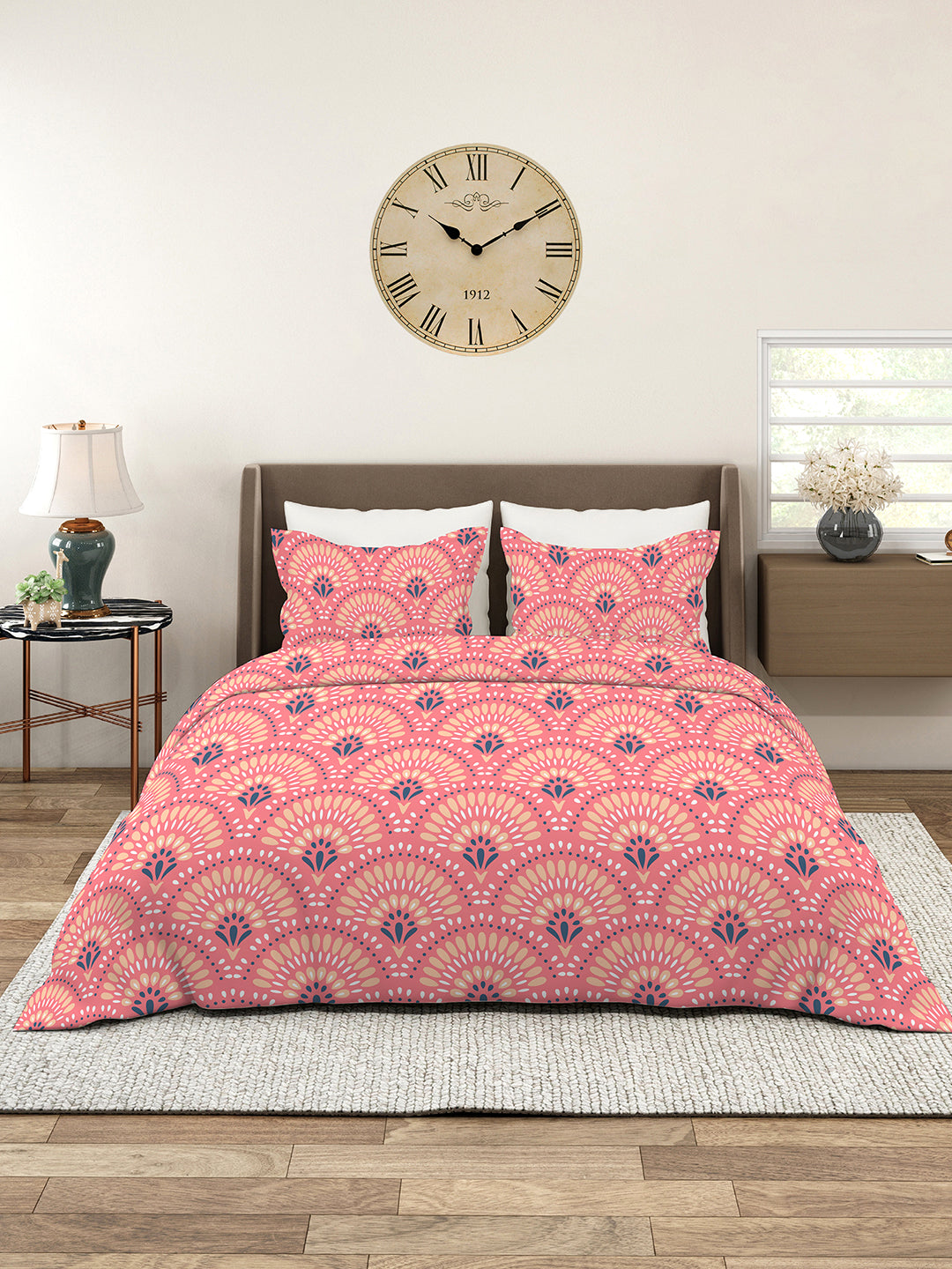Aura Microfibre 110 GSM Pink Ethnic King Size Bedsheet with 2 Pillow Covers