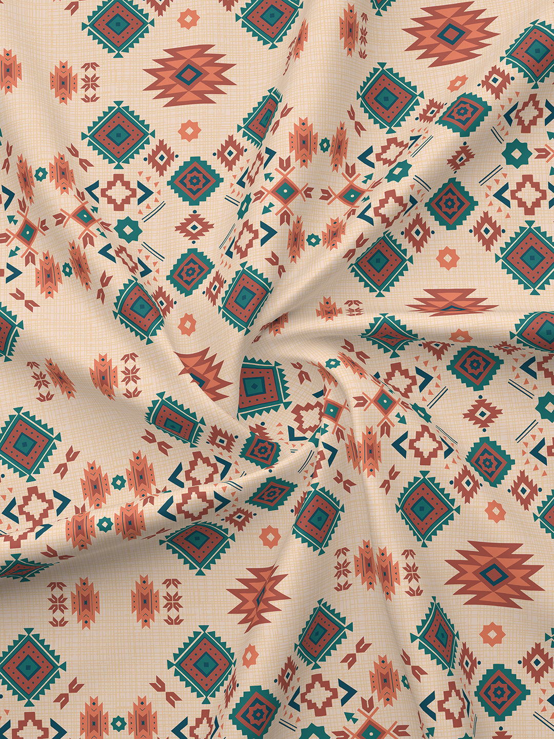 BasicX 100% Cotton 120 TC Beige Ethnic Double Size Bedsheet with 2 Pillow Covers