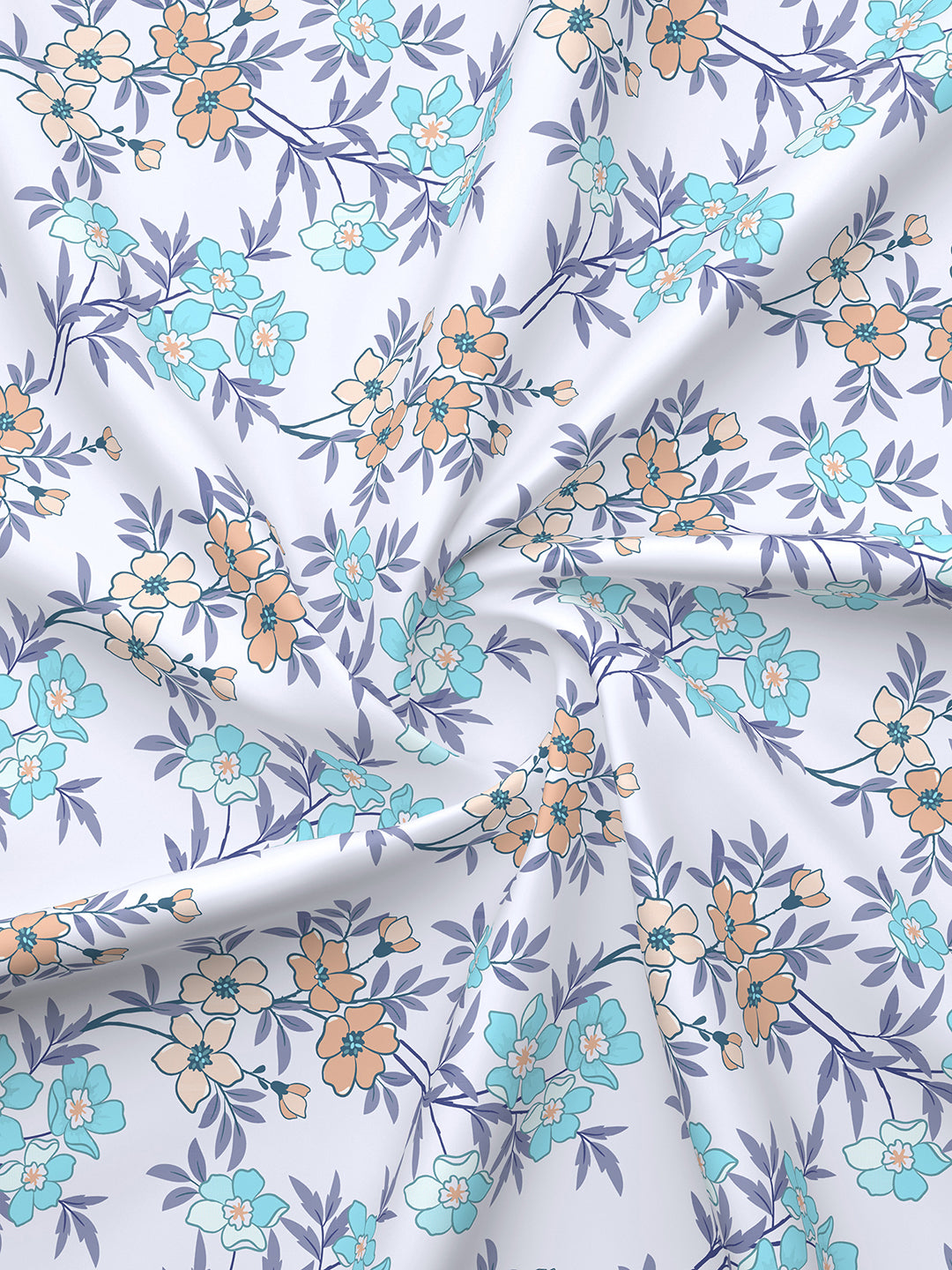 BasicX 100% Cotton 120 TC Blue Floral Double Size Bedsheet with 2 Pillow Covers