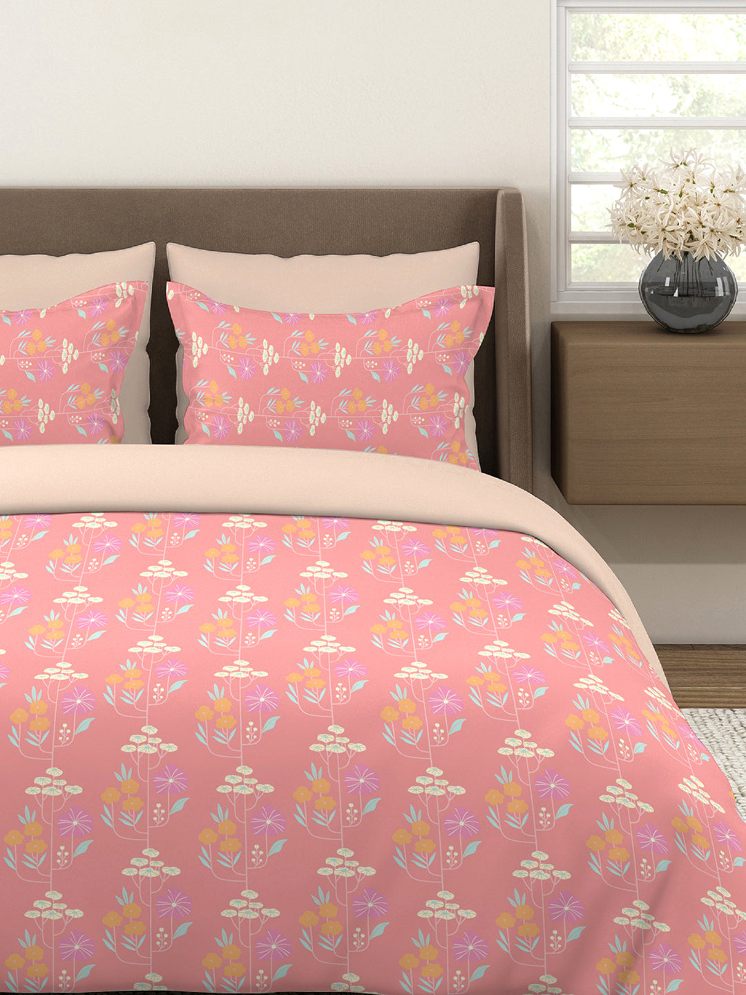 BasicX 100% Cotton 120 TC Pink Floral 1 Double Size Bedsheet with 2 Pillow Covers