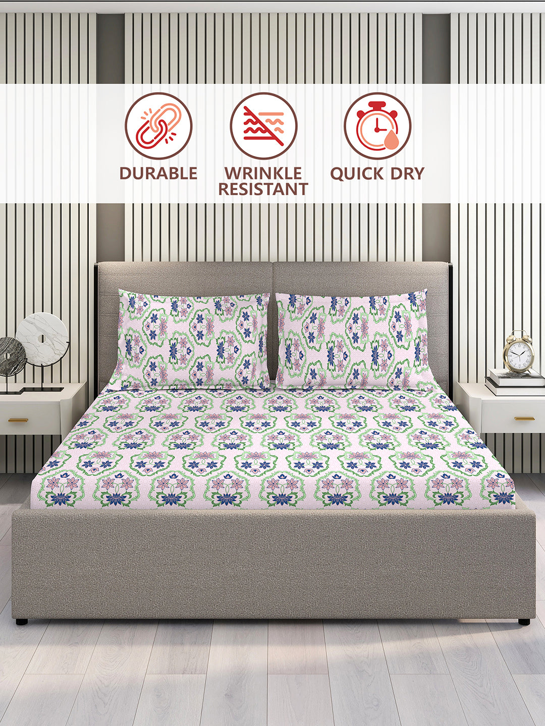Soft & Breathable Cotton Comfort – Experience luxury with the Layers Basicx 100% Cotton Bedsheet Set, designed for all-season use. The 120 TC weave ensures a lightweight, moisture-absorbent feel, keeping you cool in summer and cozy in winter.