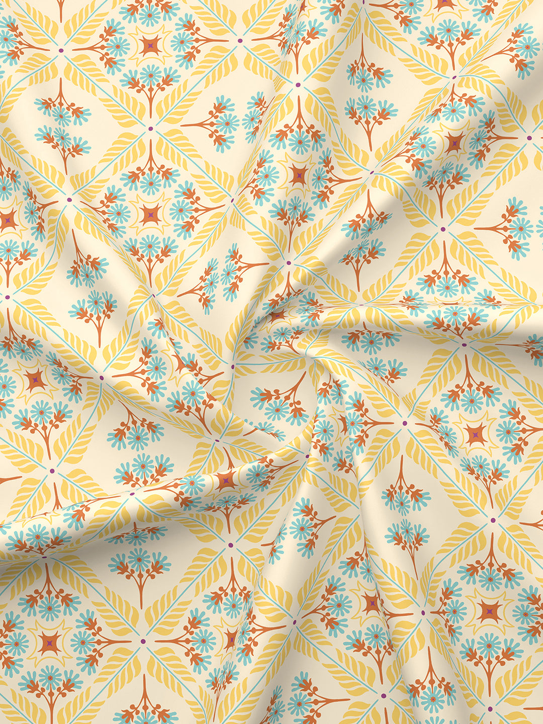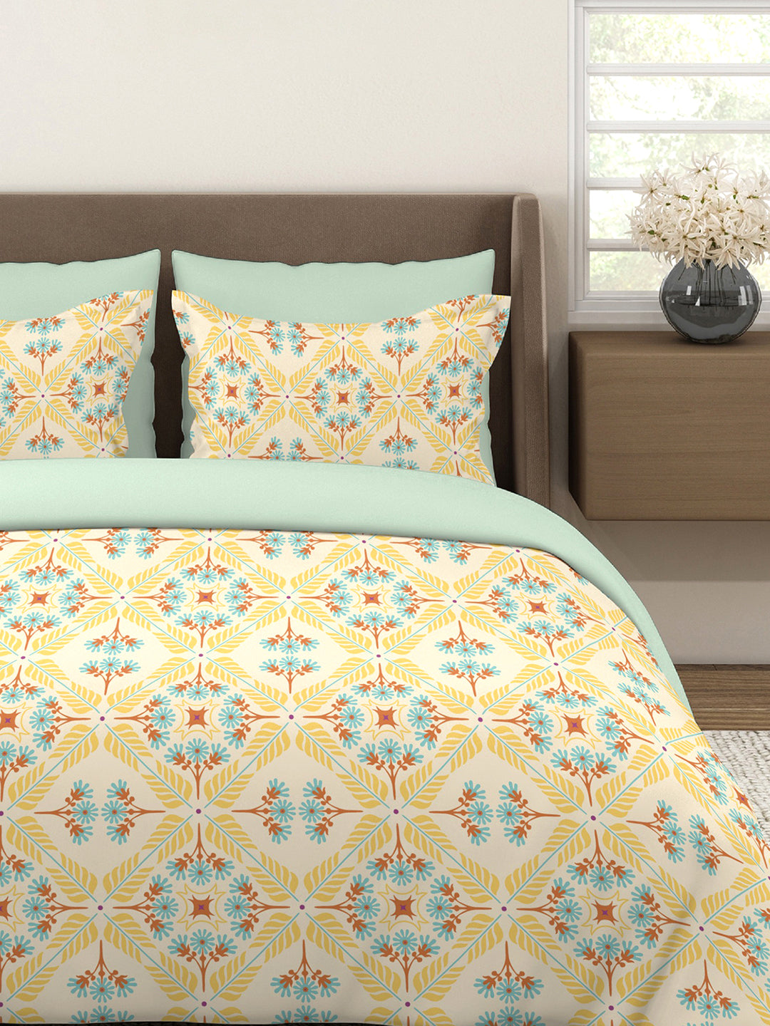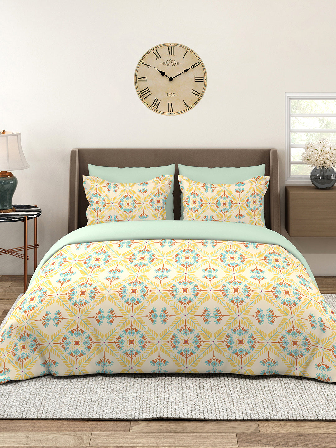 BasicX 100% Cotton 120 TC Yellow Floral King Size Bedsheet with 2 Pillow Covers