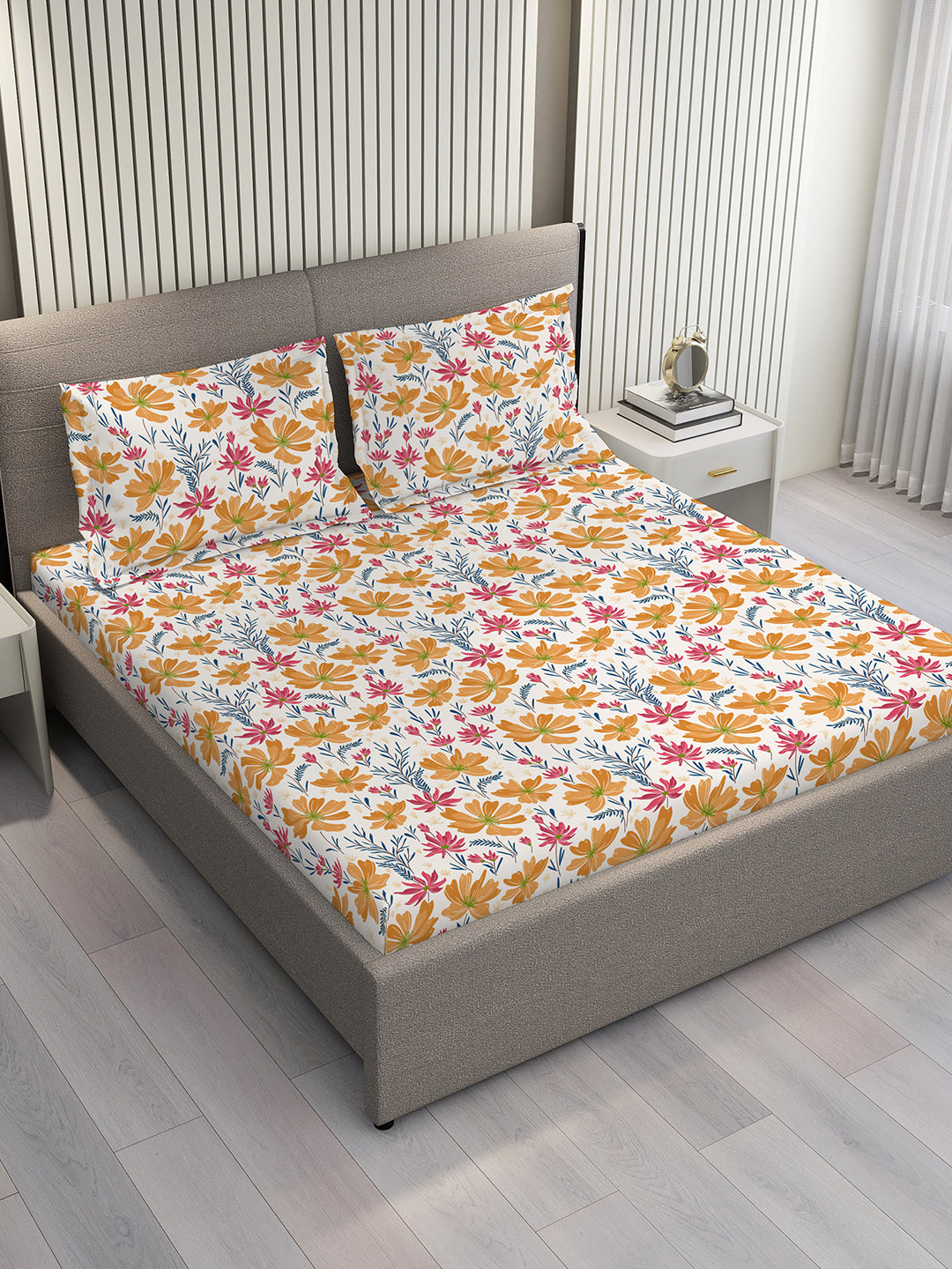 Bloom Microfibre 115 GSM Multicolor Floral Double Size Bedsheet with 2 Pillow Covers