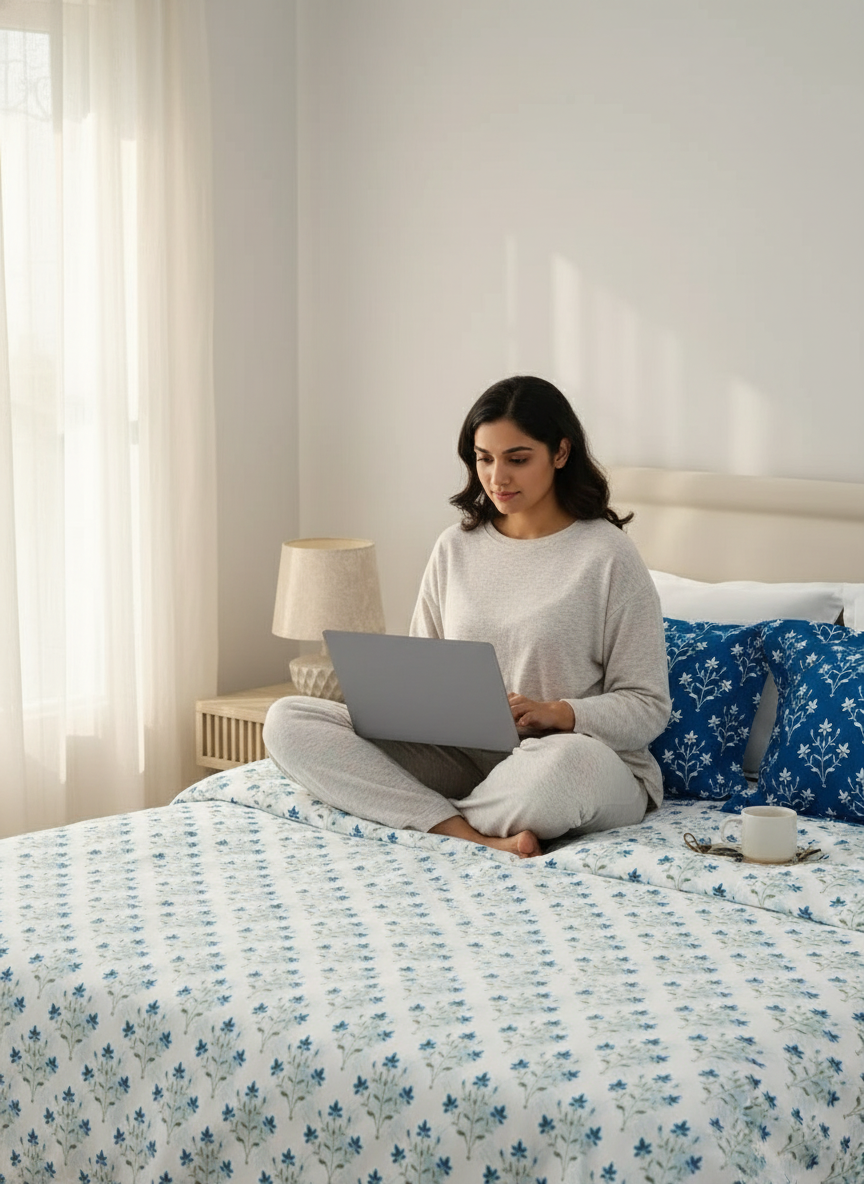 Ideal for all seasons, the cotton fabric wicks away moisture, keeping you cool in summer and warm in winter. Easy to maintain and machine-washable, these bedsheets retain their color and texture wash after wash. Elevate your bedroom décor with Layers Forever – where comfort meets creativity.