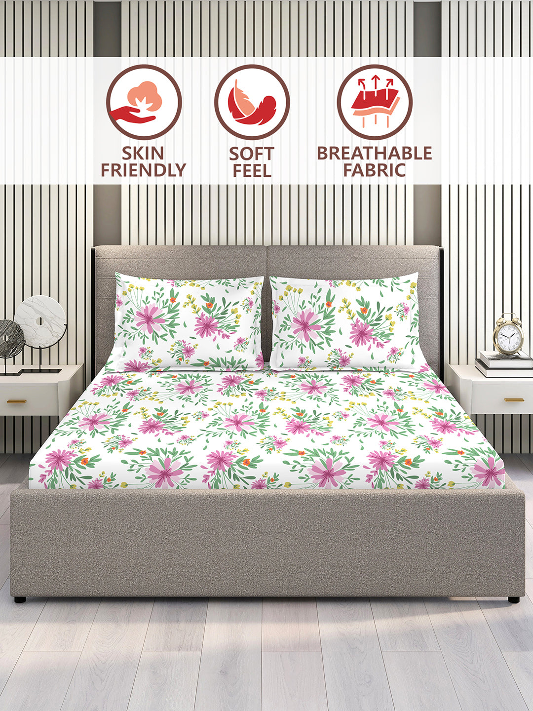 Marigold 100% Cotton 144 TC Multicolor Floral King Size Bedsheet with 2 Pillow Covers