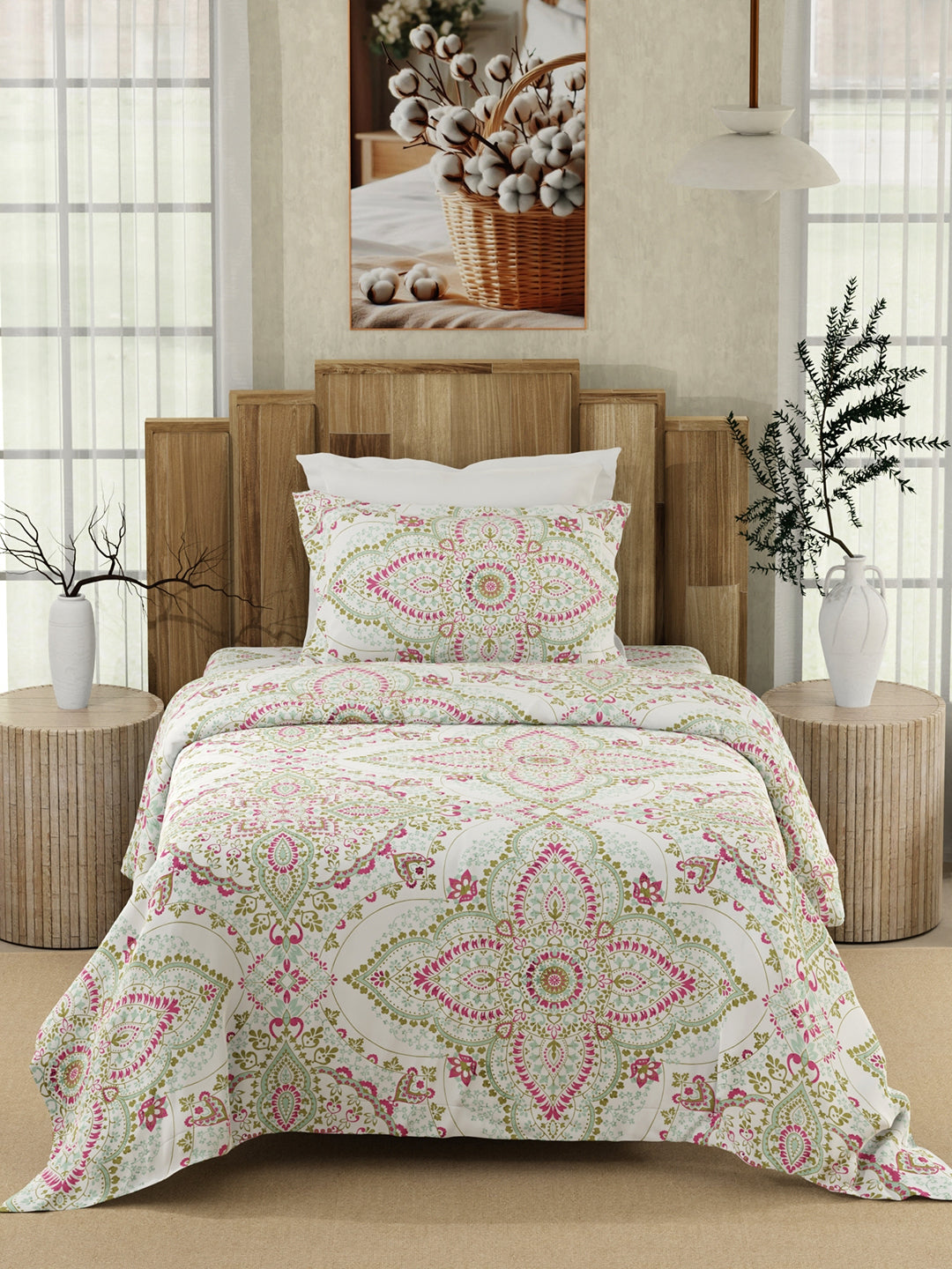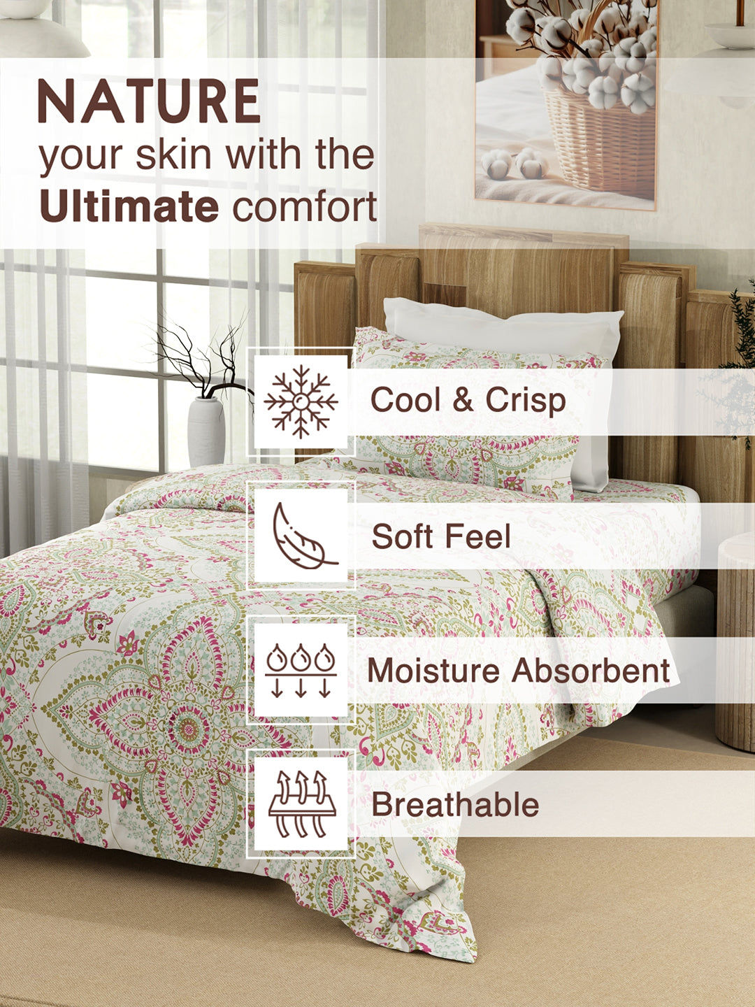 Serenity 100% Cotton 200 TC Multicolor Ethnic Single Size Bedsheet with 1 Pillow Cover (Jaipur Medallion)