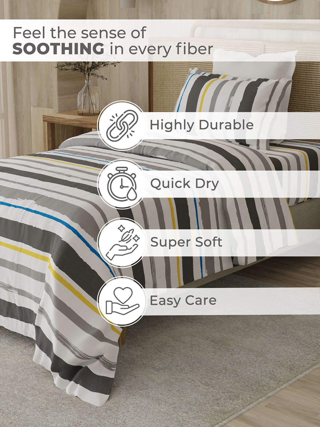 Zen 225 CVC Grey Brush Stripes Single Size Bedsheet with 1 Pillow Cover