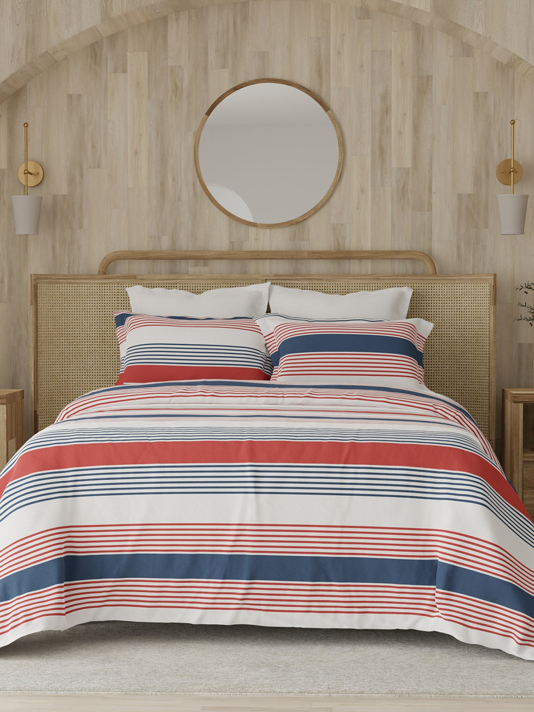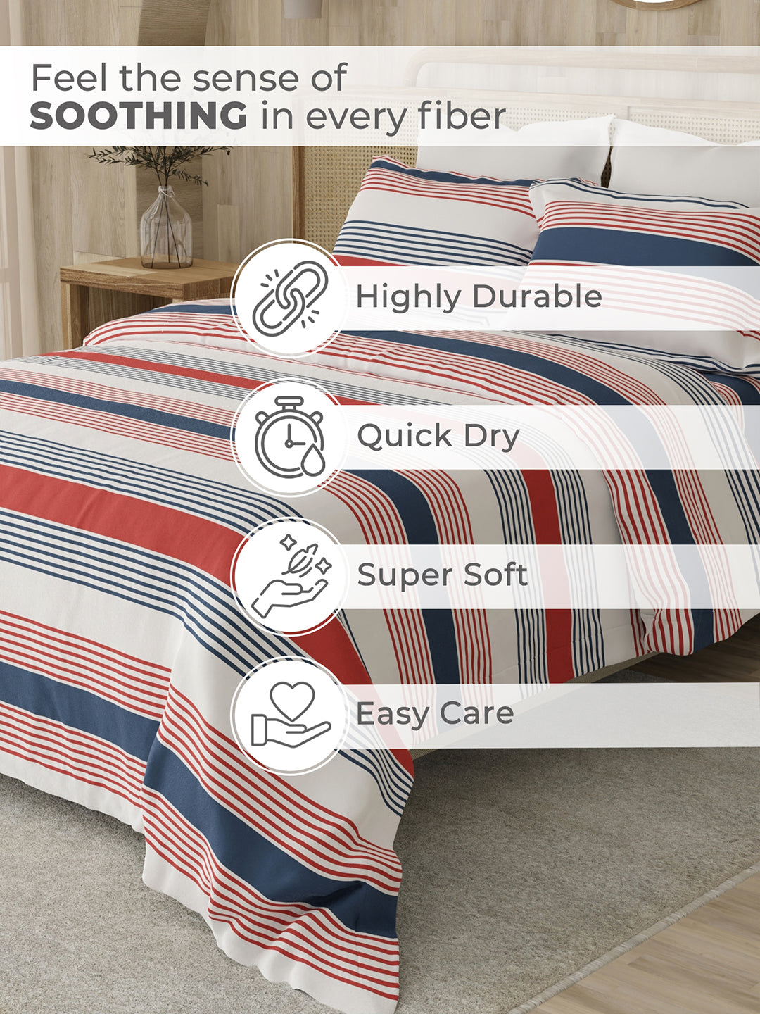 Zen 225 CVC Red & Blue Fun Stripes Double Size Bedsheet with 2 Pillow Covers