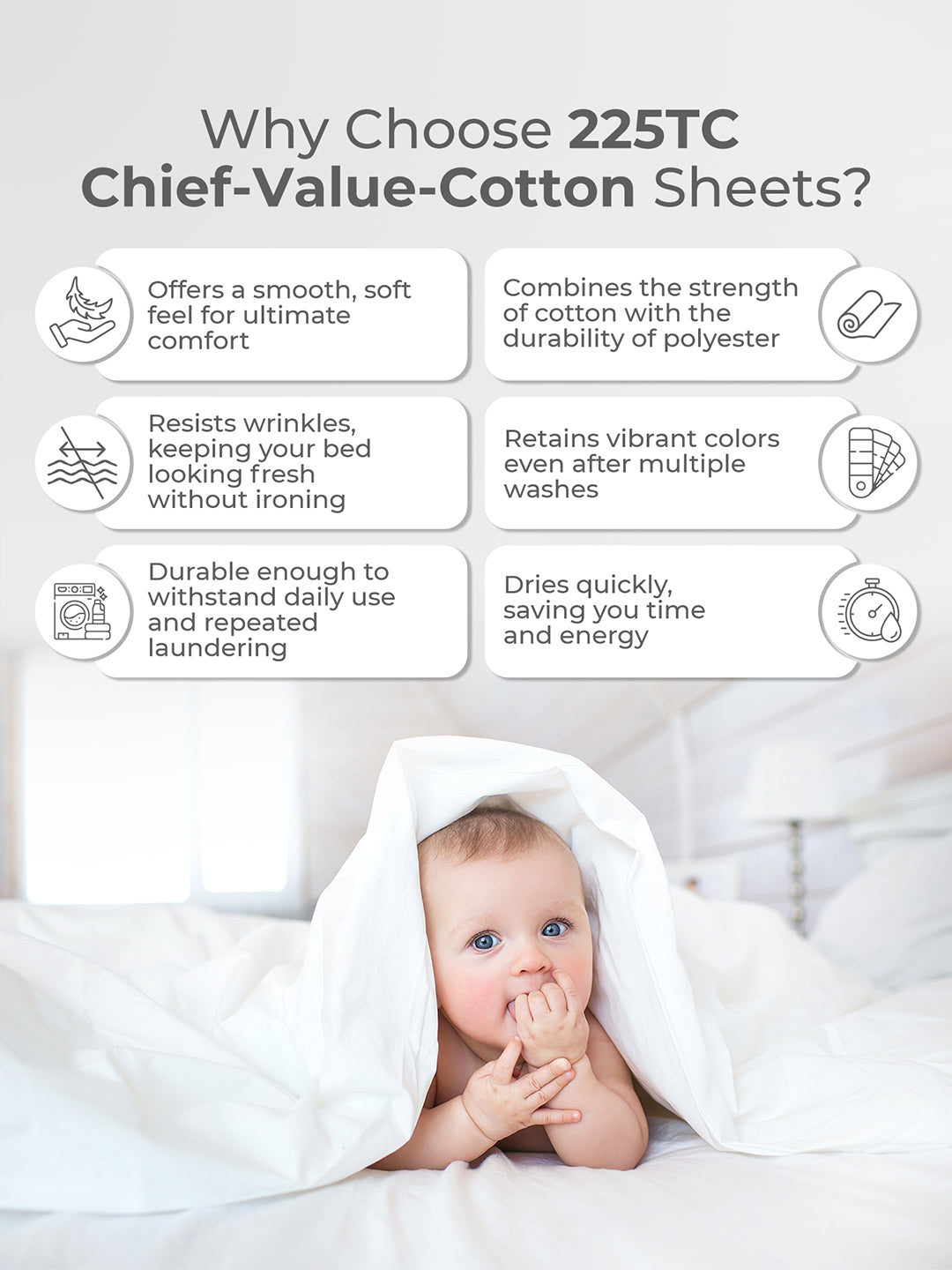 - Premium Comfort & Quality: Indulge in the supreme comfort of the Zen 225 CVC Bedsheet Set, crafted from a luxurious cotton-rich blend with a soft percale weave.