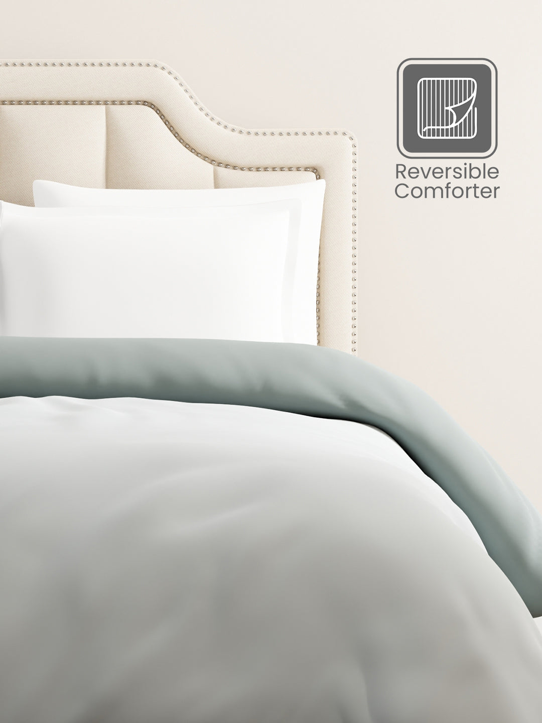 Experience year around comfort with the Layers BasicX Collection Reversible Comforter — Pack of 1. This cozy comforter features dual-sided styling for instant bedroom refreshes, hypoallergenic fill for gentle warmth, and durable stitching that resists shifting and clumping. Easy-care, machine-washable fabric maintains softness and color.