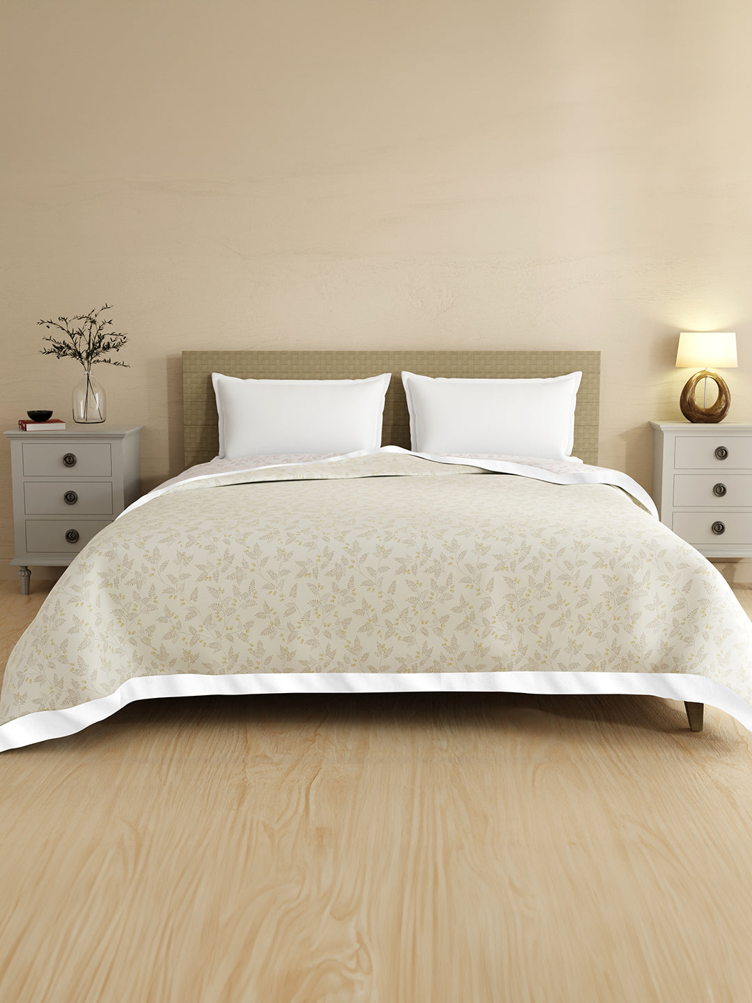 Revesible Double Dohar, 100% Cotton 120 TC, Grey & Beige Floral, (2.54 m L x 2.54 m W), Forever